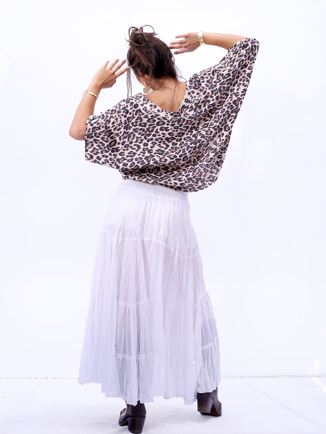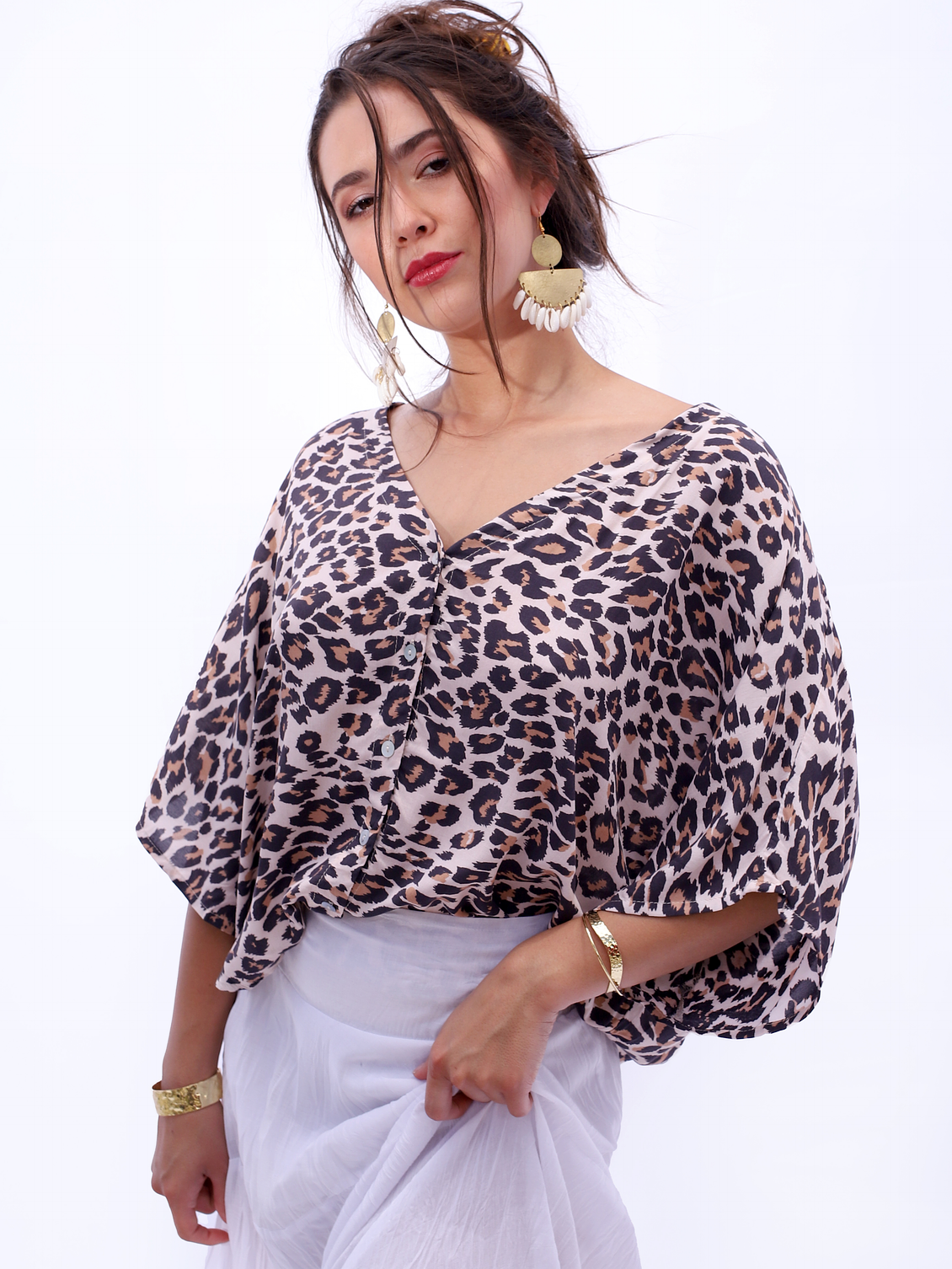 Blusa con estampado animal print, con delicados botones al centro y caida liviana.