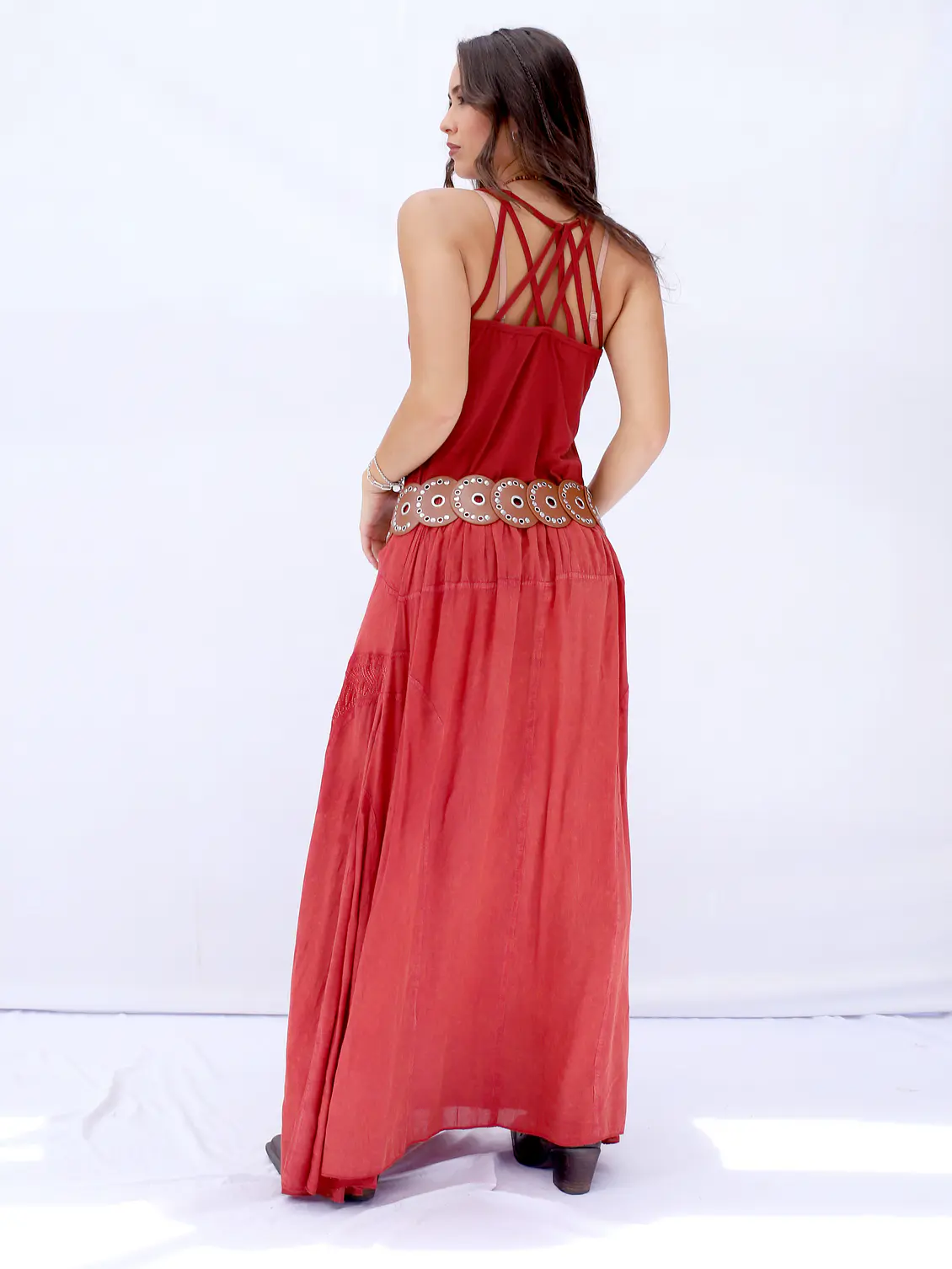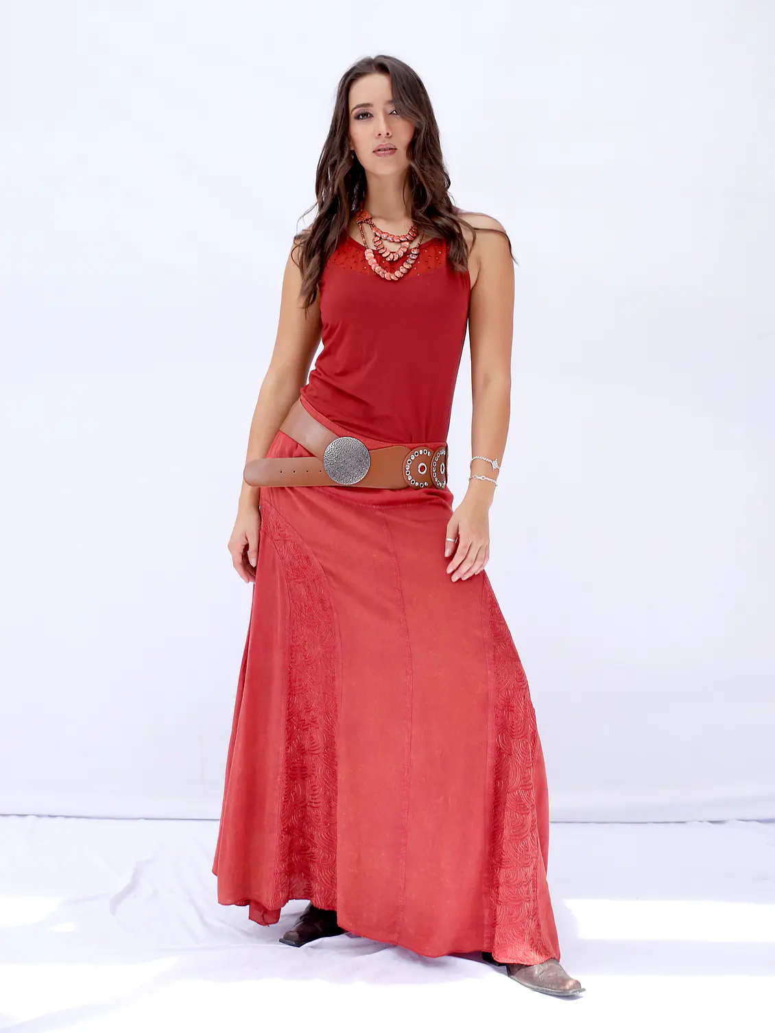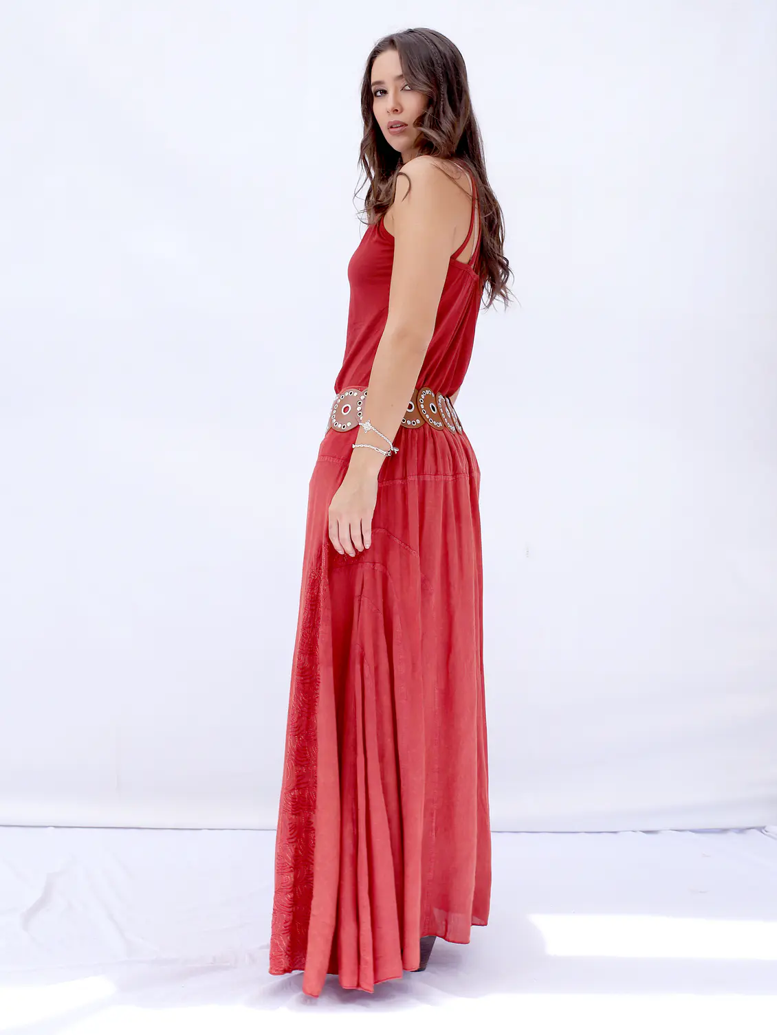 Falda con diseño y bordado a los costados. Pretina en la espalda .