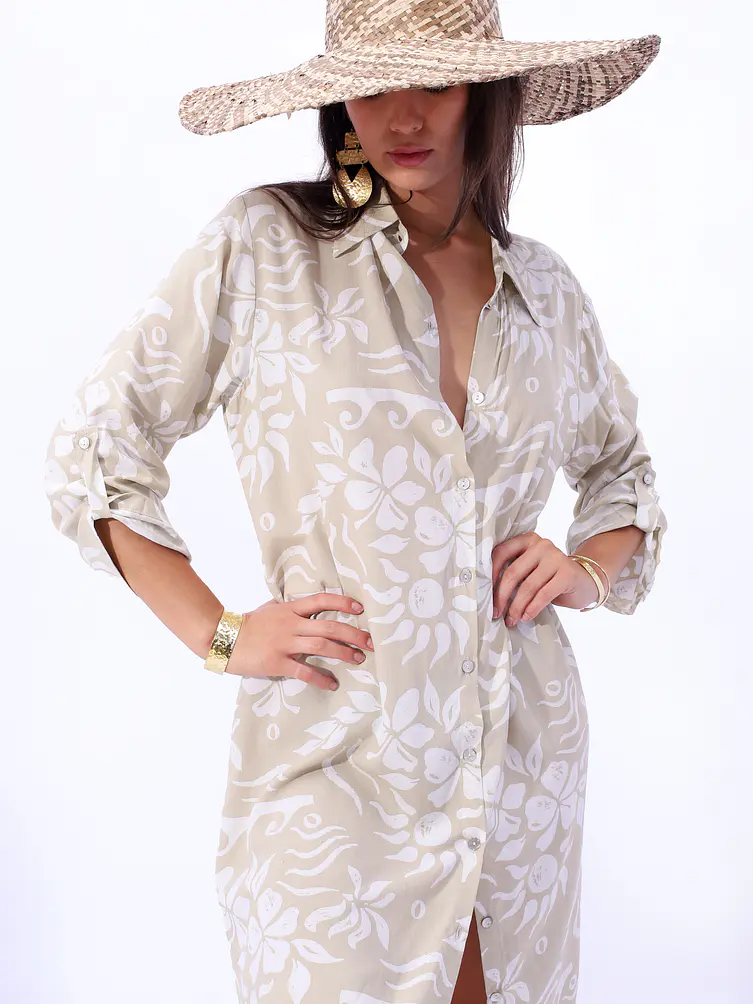 kimono Geometrico, diseñado con vibrantes patrones tropicales que capturan la esencia del verano. Este kimono largo es perfecto para agregar un toque de estilo bohemio a cualquier atuendo, ya sea que vayas a la playa o disfrutes de un día informal al aire libre. Su tejido liviano garantiza comodidad y transpirabilidad, lo que lo convierte en una prenda de vestir esencial para la temporada de verano.